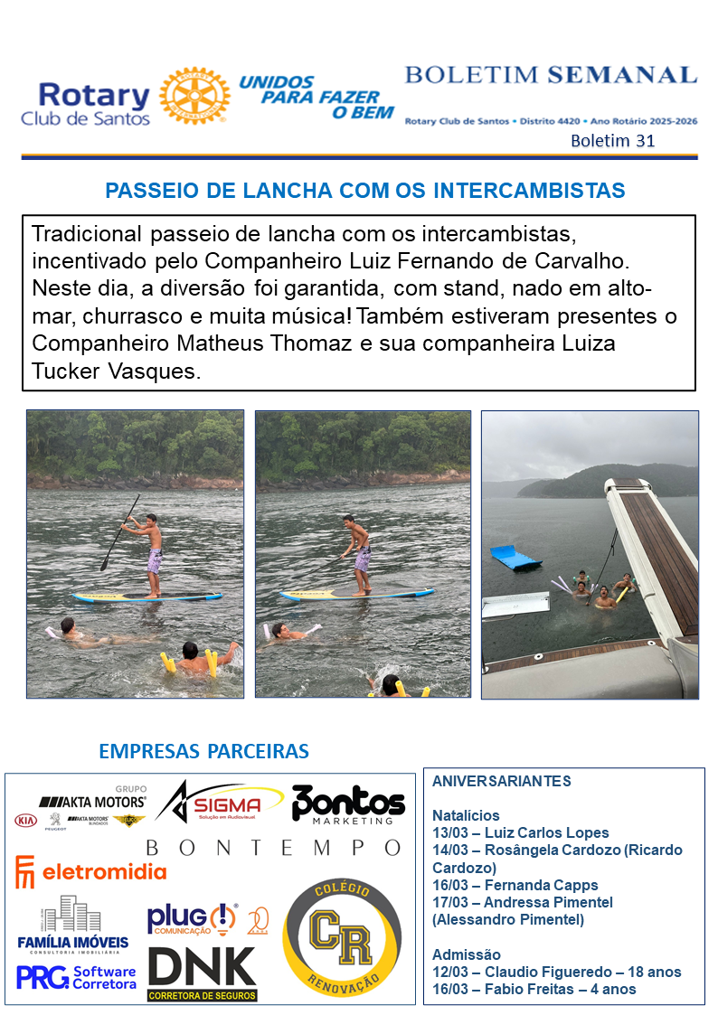 BOLETIM 31 – ANO ROTÁRIO 2025-2026por marilenemarço 9, 2026março 11, 2026 Deixe uma resposta Cancelar respostaO seu endereço de e-mail não será publicado. Campos obrigatórios são marcados com *Nome * E-mail * Site Comentário * Salvar meus dados neste navegador para a próxima vez que eu comentar. Δ
