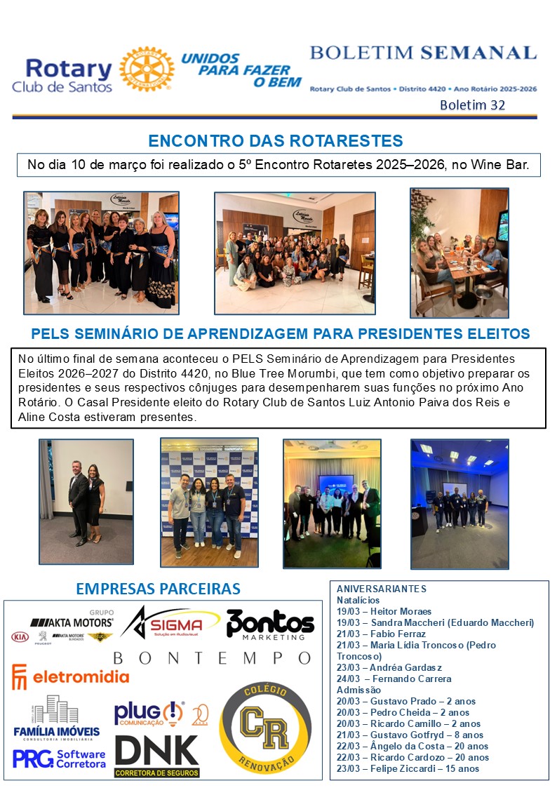 BOLETIM 32 – ANO ROTÁRIO 2025-2026by marileneApril 7, 2026 Leave a Reply Cancel replyYour email address will not be published. Required fields are marked *Name * Email * Website Comment * Save my name, email, and website in this browser for the next time I comment. Δ